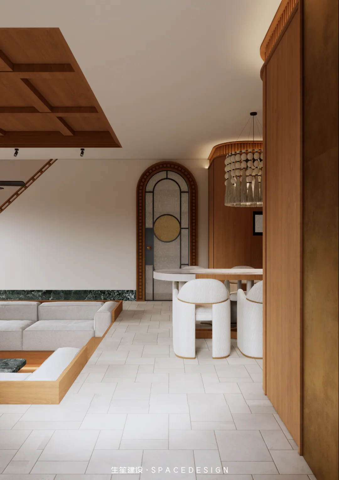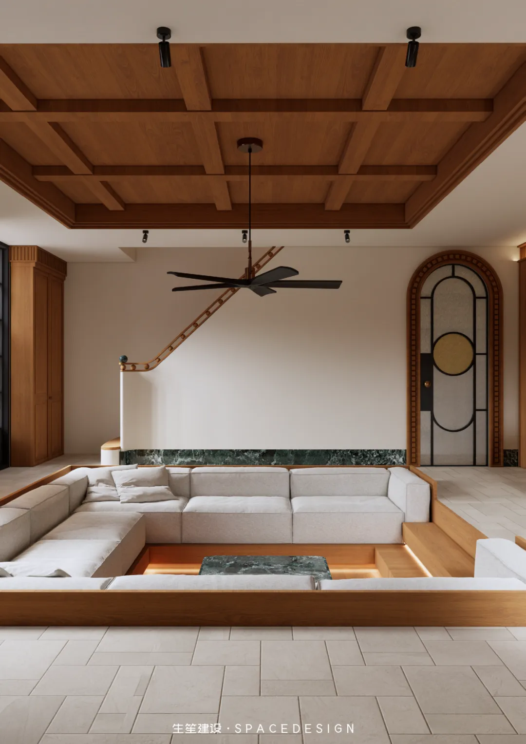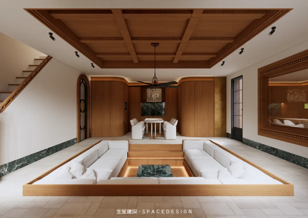 整个项目我们以设计为桥,连接民国建筑的风骨与当代生活的松弛,不执着于技法的繁复,不纠结于尺度的精准,只让空间成为情绪的载体,让每一寸肌理都呼应居者对生活的赤诚。设计隐于幕后,让生活站上C位,并摒弃刻意的改造技法,以浅暖灰为生活底色,以柚木为时光注脚,用复古的底蕴碰撞当代的舒适。下沉式的格局,是对生活节奏的慢放;圆润的线条,是对棱角人生的柔化;光影与材质交织,勾勒出空间的情绪,也映照出居者克制、从容、自带质感的生活哲学.