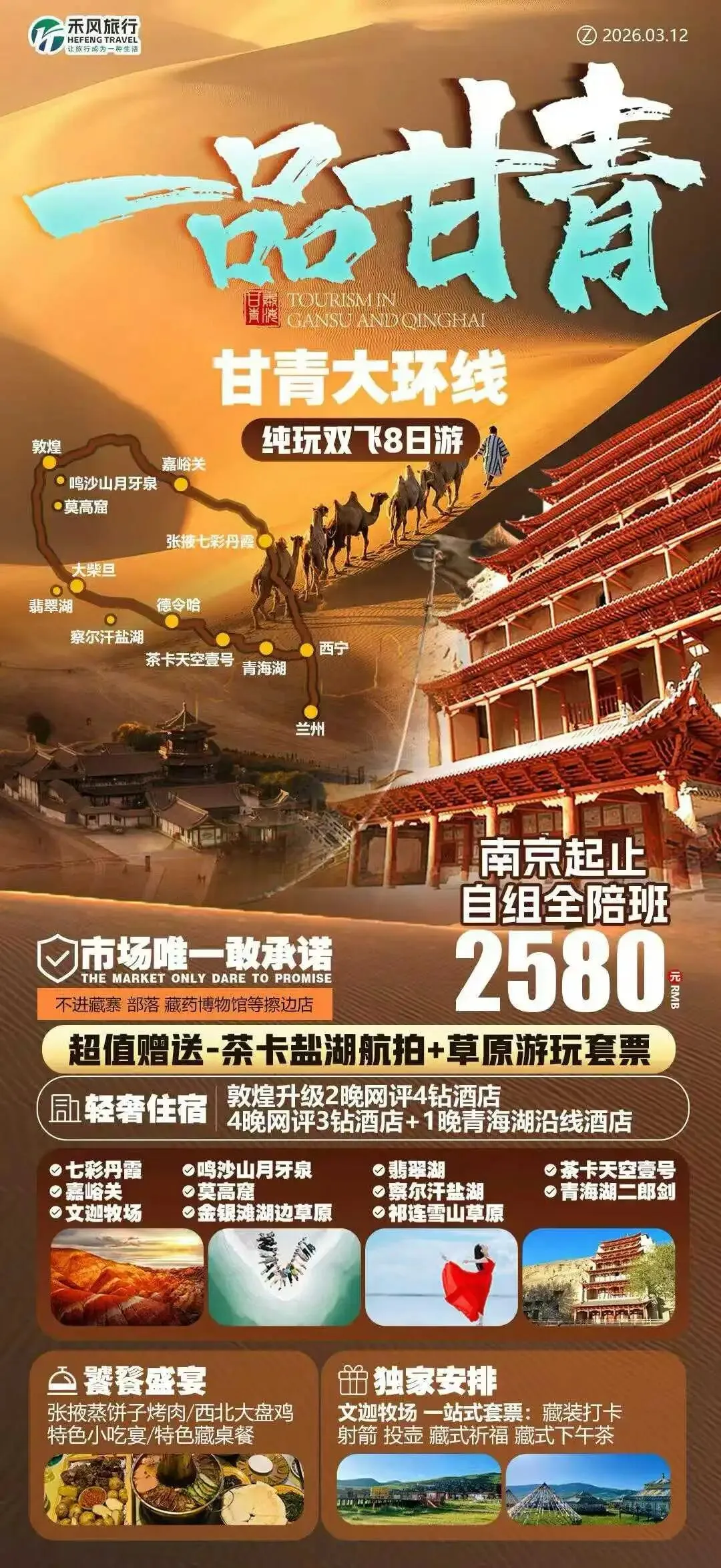 ✅ 精华景点:七彩丹霞、嘉峪关、鸣沙山月牙泉、莫高窟、翡翠湖、茶卡盐湖、青海湖二郎剑…一次打卡西北所有网红地标!