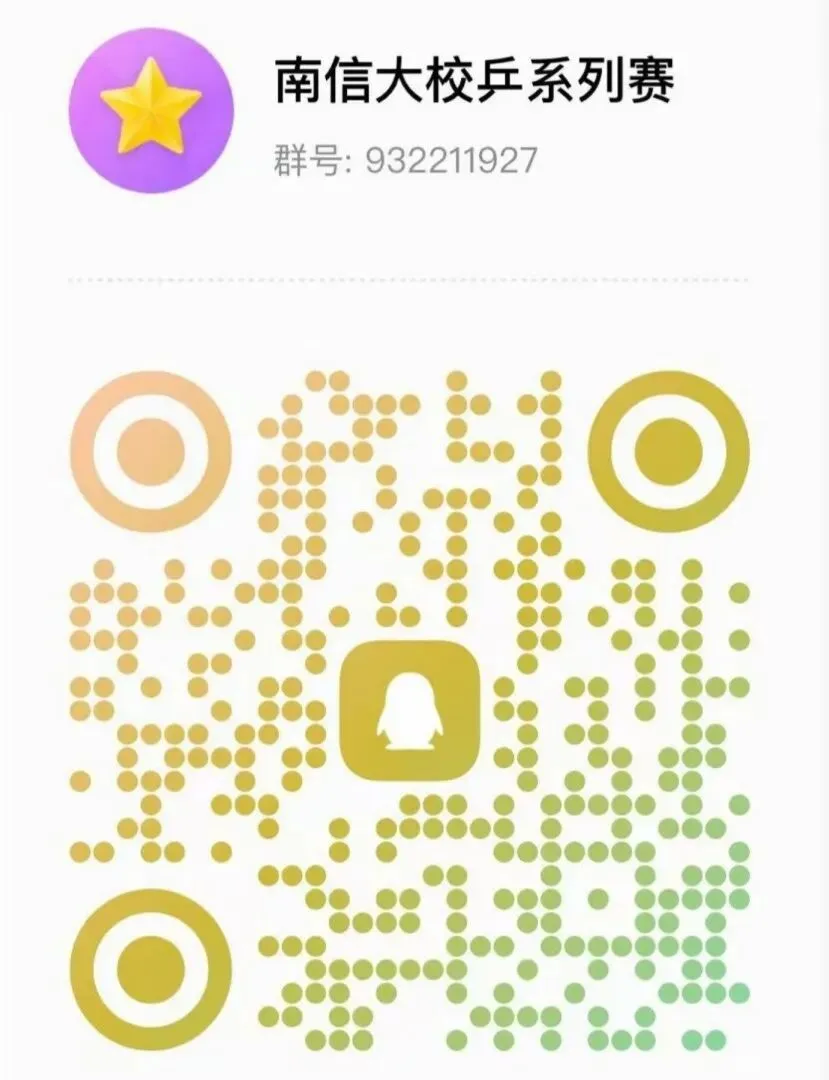 南信大校乒系列赛QQ(932211927)群,群内会第一时间发布系列赛中各分赛的竞赛规程、报名方式、抽签安排、秩序册、比赛成绩等相关信息,请各学院负责人及有意参加比赛的运动员于3月18日前进群,关注比赛动态及最新消息。