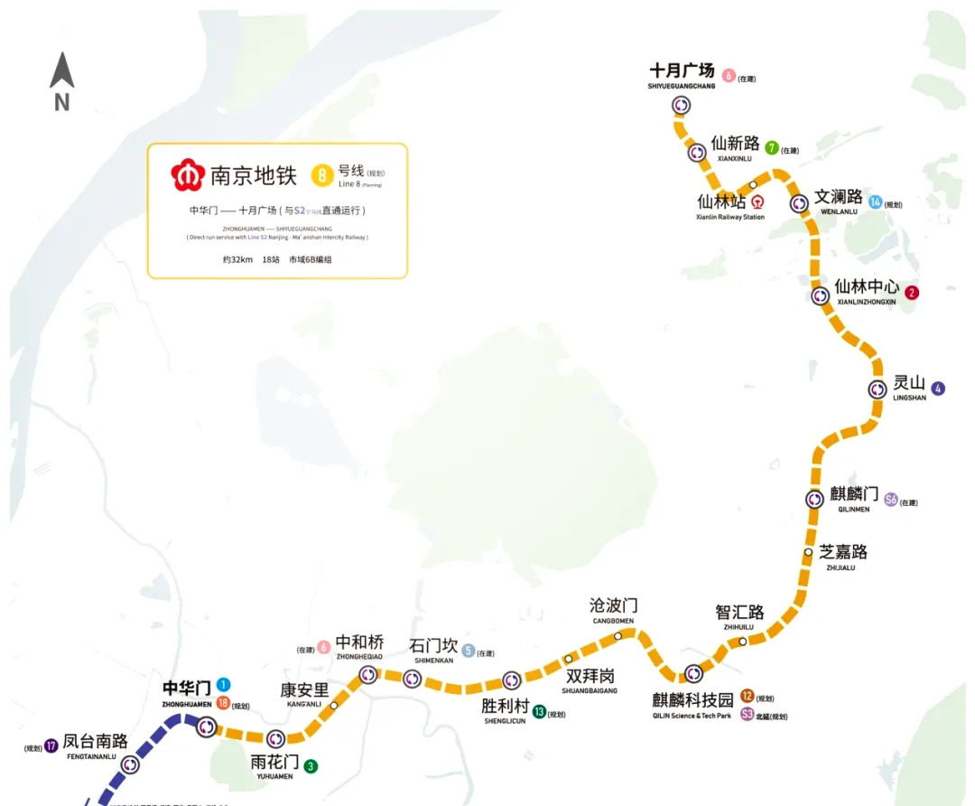规划中的8号线二期起始站为生态公园,终点站为中华门站。