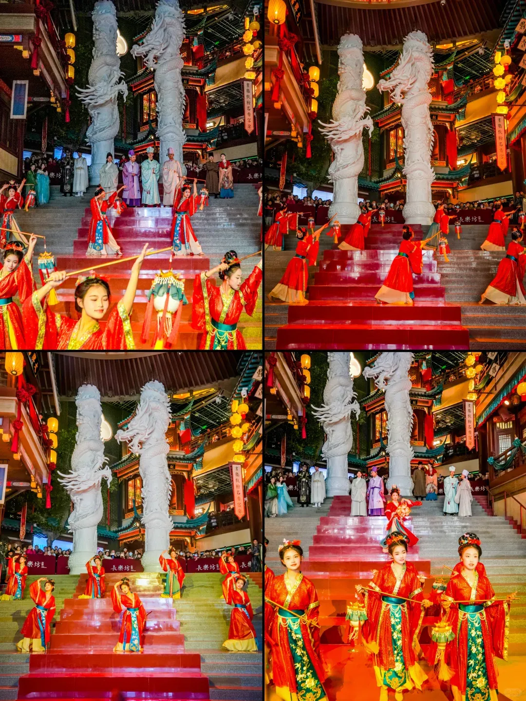2. 演出与互动:全天20+场免费演出(《长乐未央》歌舞、四大才子互动、科举主题巡游等),NPC互动、汉服妆造旅拍全覆盖