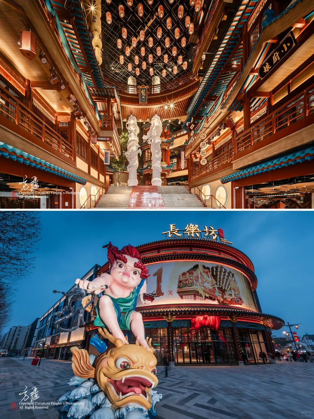 后游玩【南京长乐坊】(赠送浏览)江苏省南京市秦淮区长乐路132号,夫子庙与老门东正中间;前身:原沃尔玛超市(老针织内衣厂旧址)改造,保留建筑骨架的城市更新项目;2026年2月19日(正月初三)试营业,免费免票入场(餐饮、汉服、体验项目另付费)• 规模:约4万㎡沉浸式大明文化空间,复刻《南都繁会图》街市格局