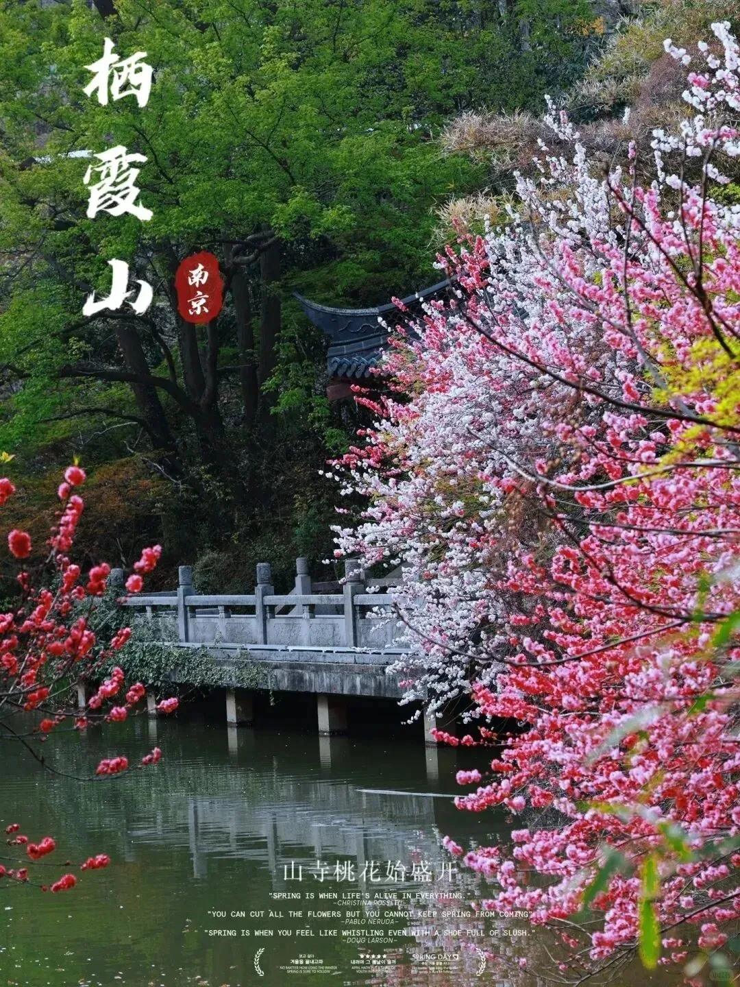 所以,我们在这里,铺满了春色浪漫~ 桃花开了满眼粉粉一树,住着春天。 春天很短,要及时行乐。 所以我们要赶紧,赶紧地,去春天里, 去桃花深处,遛遛自己。 来和我交换一张你手机里栖霞山的春天~