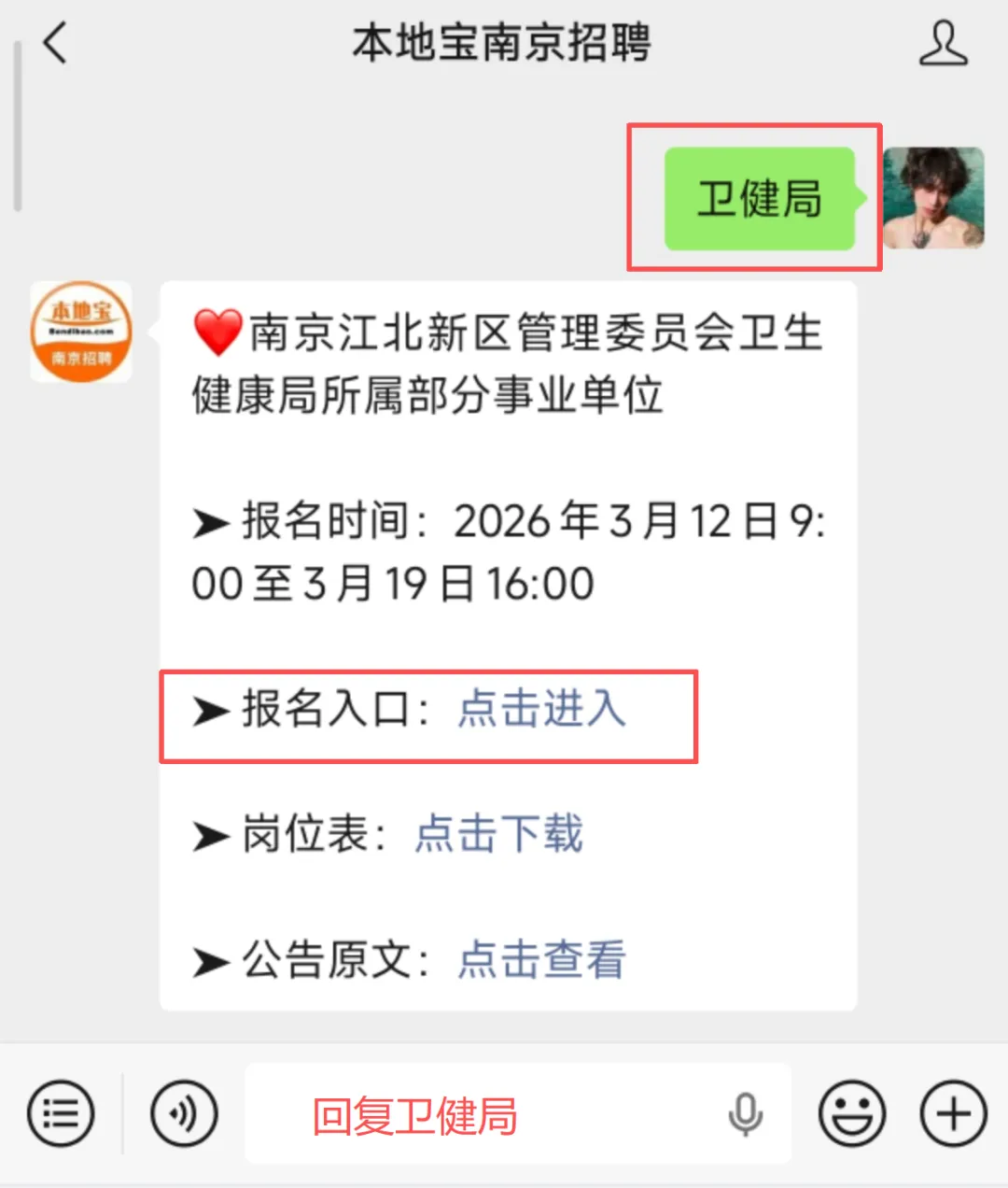 ⭐推荐服务:您可以长按下方二维码,关注【本地宝南京招聘】公众号,回复【卫健局】,即可直达报名入口!