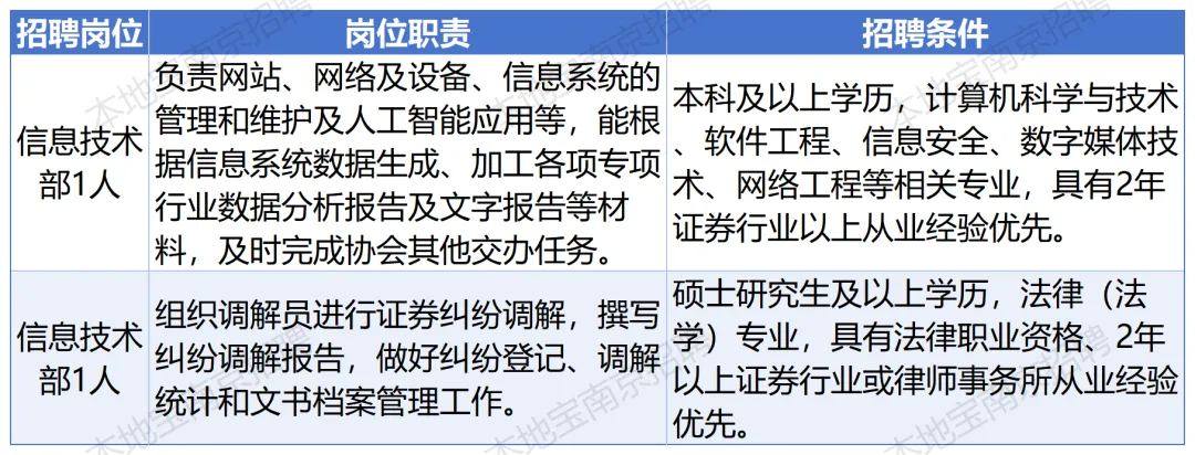 ⭐推荐服务:您可以关注【本地宝南京招聘】公众号,回复【证券】,即可直达报名入口!
