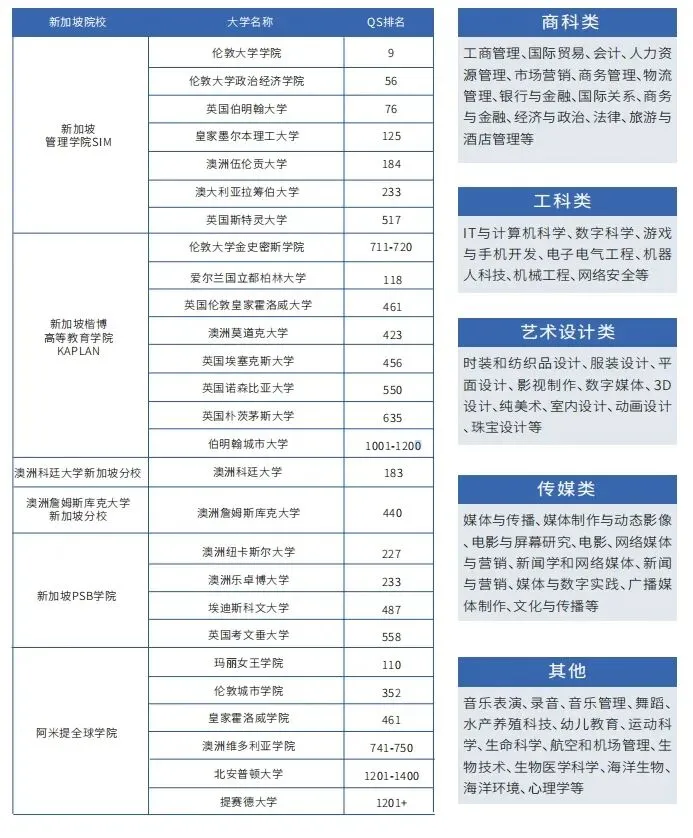 学生可在新加坡完成学习后,申请包括港澳以及美国欧洲名校的硕士学位,硕士阶段完成学业,获得教育部认证的硕士研究生文凭。