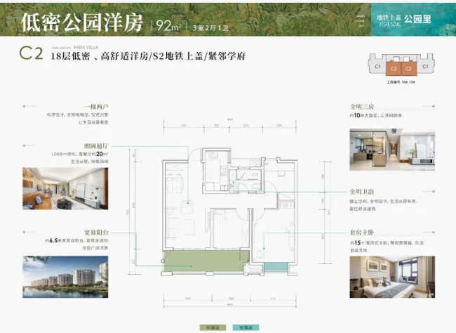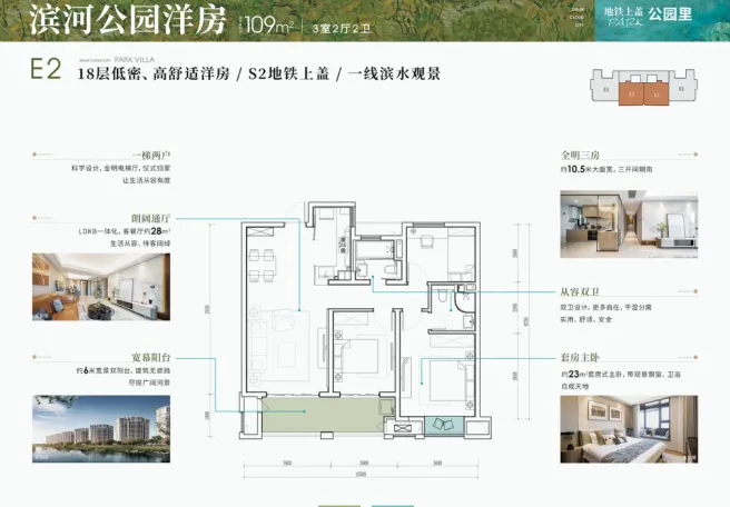 建面约92㎡和109㎡精致三房:户型方正、双阳台、南北通透,而且总价友好,功能齐全,为未来置换留足空间。