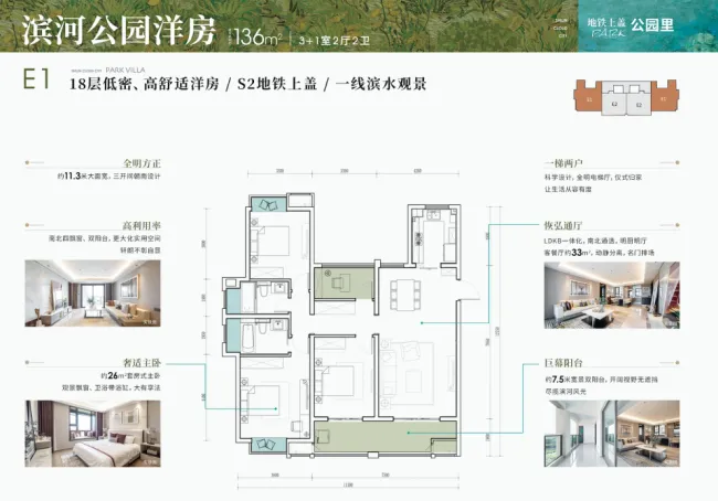 建面约136㎡改善四房:每个家庭成员都有自己的天地,互不打扰,三代同堂也不在话下,同时挑高约5.6米,带有约100平空中露台,私密安静。