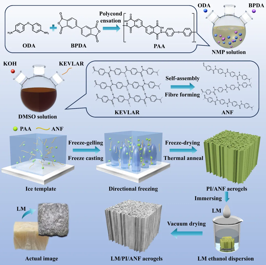论文题目:具有可编程电磁切换功能的形状记忆驱动型液态金属/聚酰亚胺/芳纶纳米纤维气凝胶用于智能电磁波管理一种具有形状记忆功能的 LM/PI/ANF