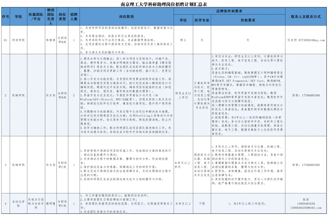 C类岗:具有大学本科及以上学历,熟悉相关学科科研工作,具备完成聘请团队安排任务的基本能力。