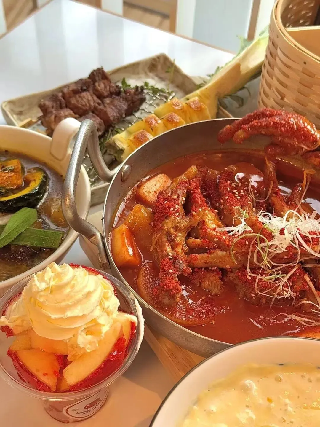 炖得软烂脱骨的鸡爪,裹满了红彤彤的秘制辣酱,搭配软糯的年糕和清爽解腻的萝卜,一口下去,甜辣的风味在嘴里炸开。鸡爪软嫩到一抿就脱骨,辣得过瘾却不烧胃,越啃越香,配一杯冰饮简直是绝配。