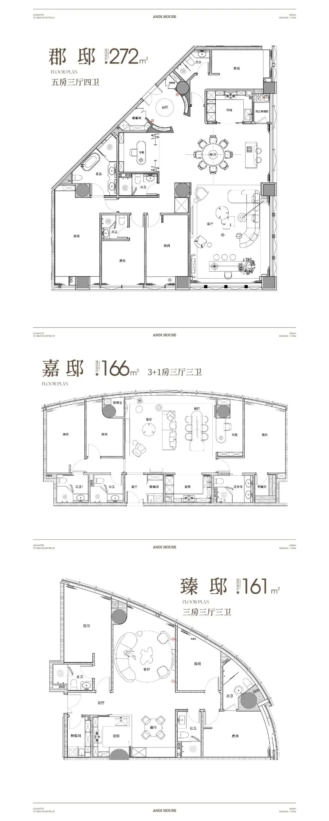 面积范围:约145㎡、146㎡、154㎡、161㎡、166㎡、272m²