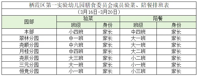 家长验菜、陪餐表