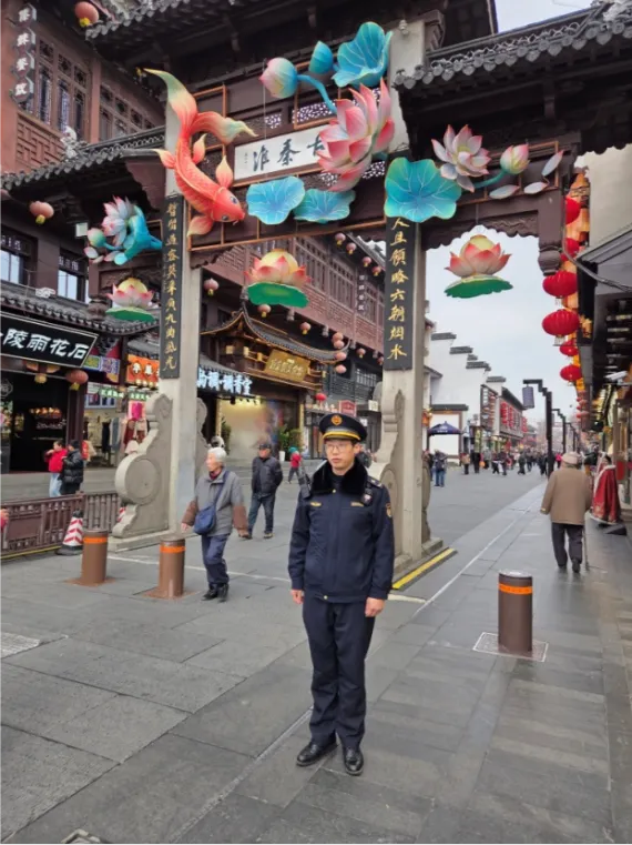 在瞻园路定岗点上,晁先超始终坚守一线,细致巡查,全力维护景区周边整洁有序的市容环境。面对往来游客,他不仅是一名市容管理者,更是一位热情周到的“指南针”与“暖心人”——为问路者耐心指引,向驻足者温馨提示,用真诚的服务传递着南京的城市温度,让八方来客在领略“金陵灯火满人间”的诗意之余,更感受到这座古都的文明与温情。