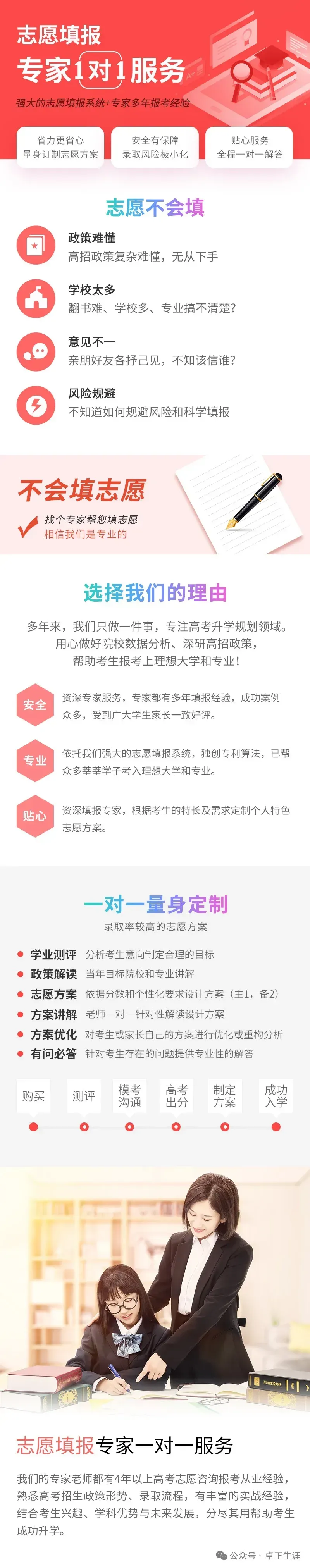 专注研究高考政策,帮助考生提前规划升学路径,轻松进入名校。我们致力于为学生提供最优质的服务,帮助他们实现自己的梦想和目标。卓正生涯为学生提供综评录取最新政策解读、综合素质评价档案填写与指导、研究性学习课程和通用技术作品指导、竞赛申报与指导、综评录取指导、综评录取高校面试指导、高考志愿填报指导等综评录取全方位定制化服务。让每一个学生都能够找到自己的方向,实现自己的梦想。请联系我们,我们将竭诚为您服务!