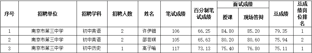 南京教师招聘||南京师范大学附属中学2026年1月公开招聘教师面试成绩公布
