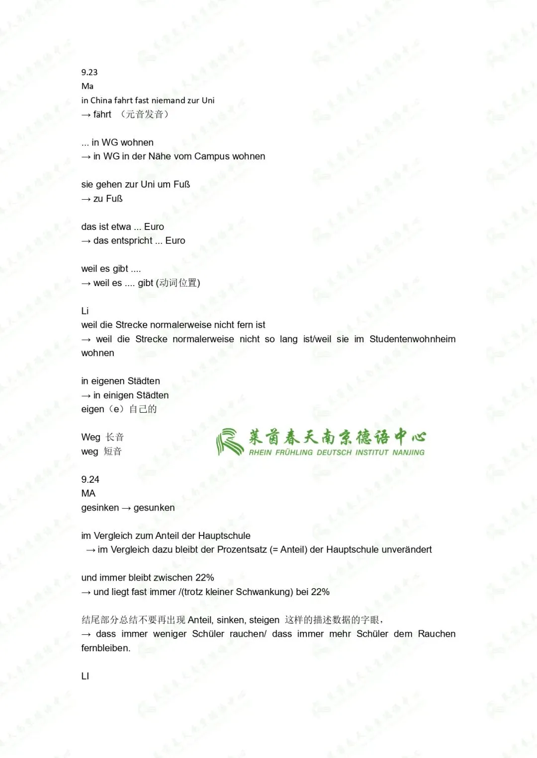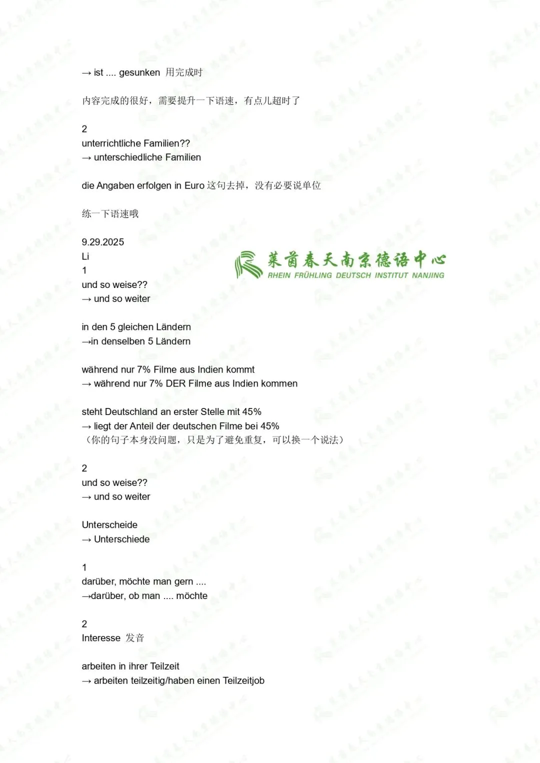 德语说得好不代表德语课上得好,符合莱茵春天标准的老师必须能一眼看出学生的问题出在哪、能用清晰的方式把复杂语法拆明白。就比如,有的机构的老师会直接告诉你规则,让你背,而我们的老师会把规则拆开,让你懂。