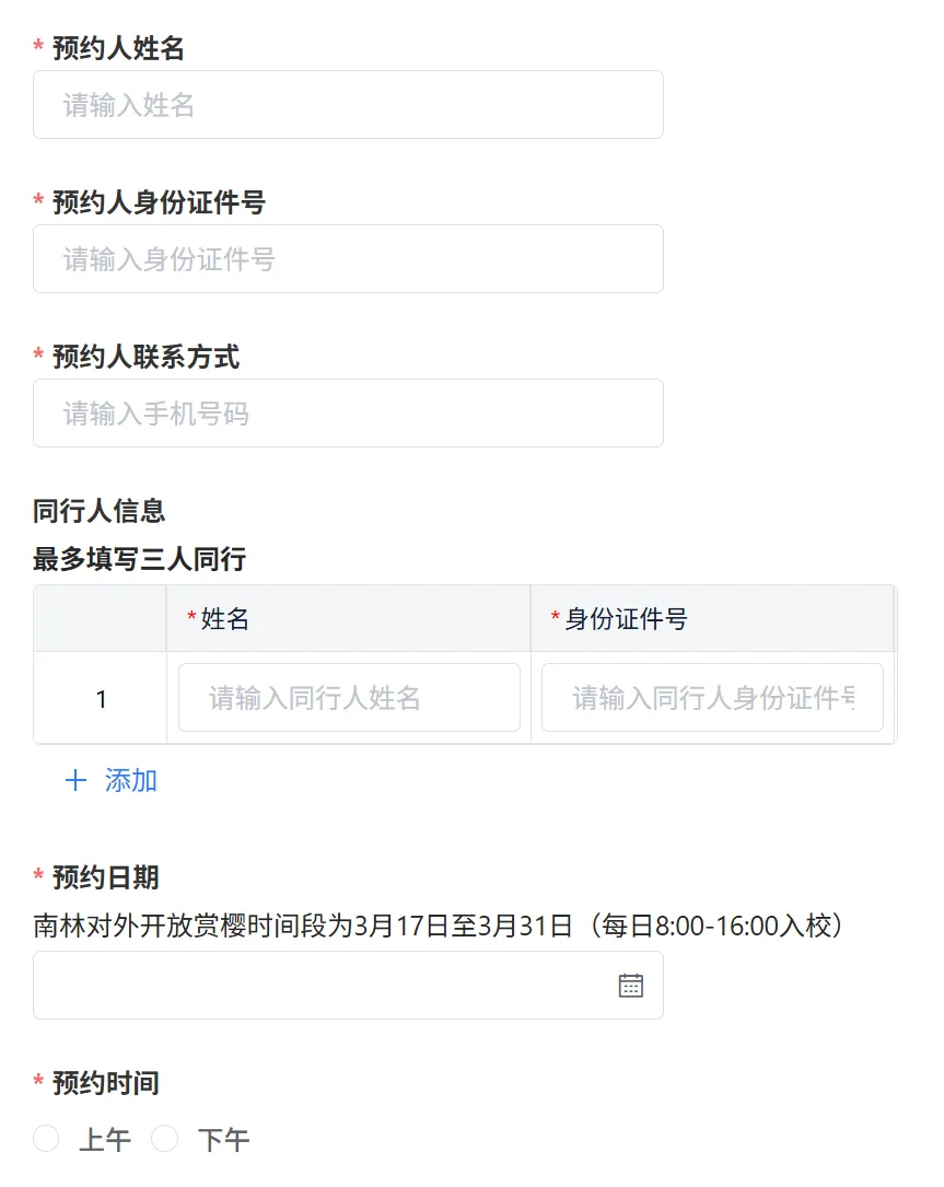 可前往南京林业大学公众号,从“公共服务”栏找到“赏樱预约”,即可进入预约