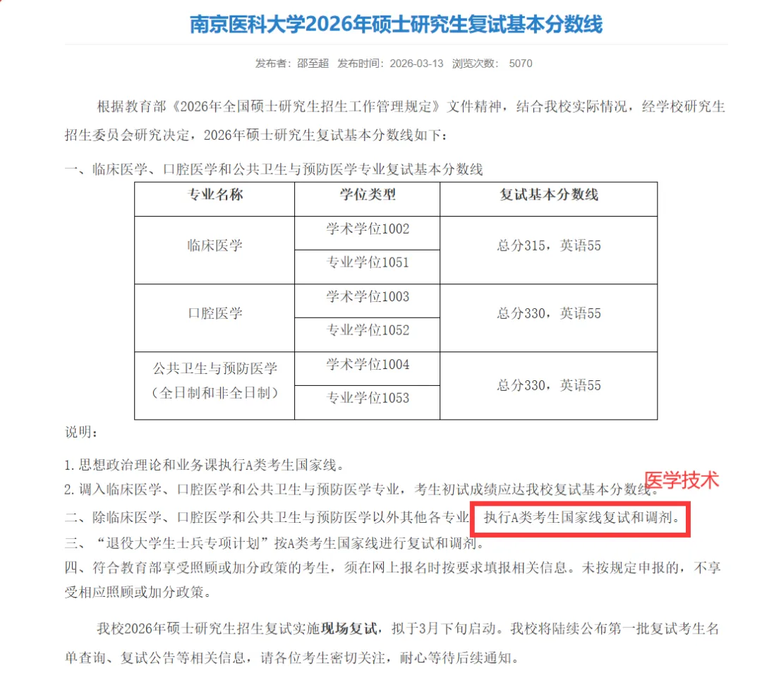 ➡️南京医科大学医学技术考研