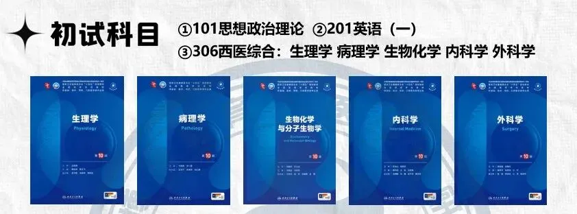 ✅初试科目:101 政治 + 201 英一 + 306 西综(涵盖生理、病理、生化、内科、外科)