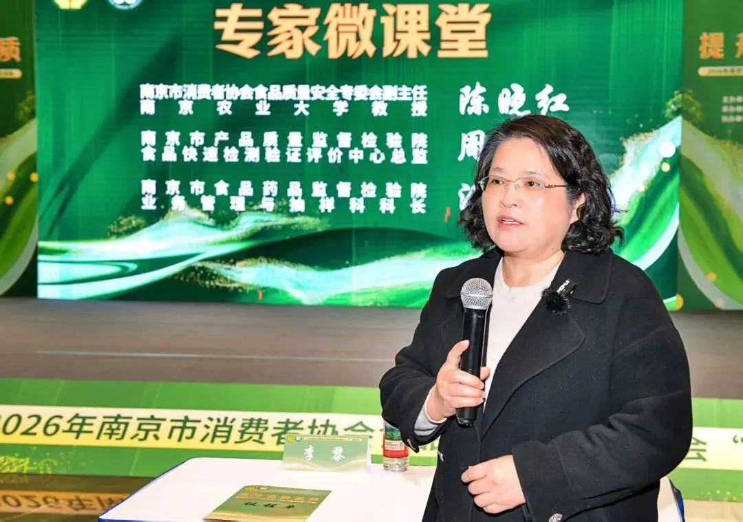 专委会副主任、南京农业大学陈晓红教授以“提高食品安全意识,提升消费品质”为题,发表了主题演讲。