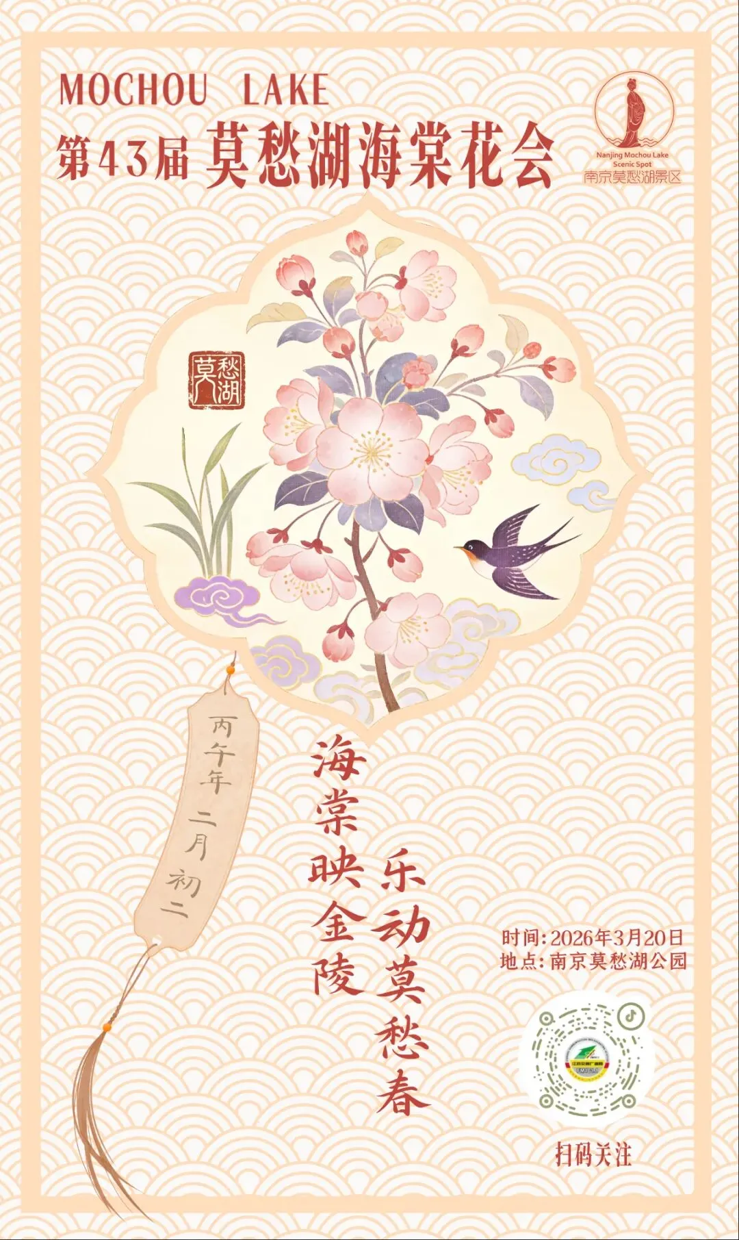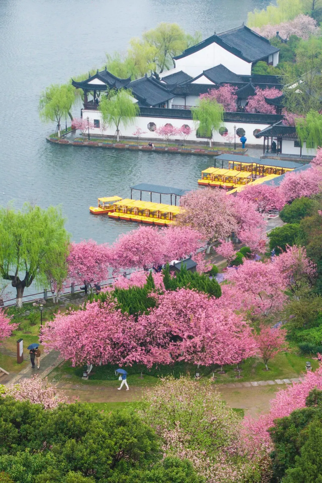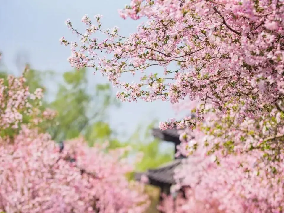 莫愁湖真正的主角——垂丝海棠和西府海棠登场。小小的、圆鼓鼓的花苞在暖风里饱满绽放,莫愁湖全域都被浪漫的粉色烟霞笼罩,随手一拍便是氛围感大片。