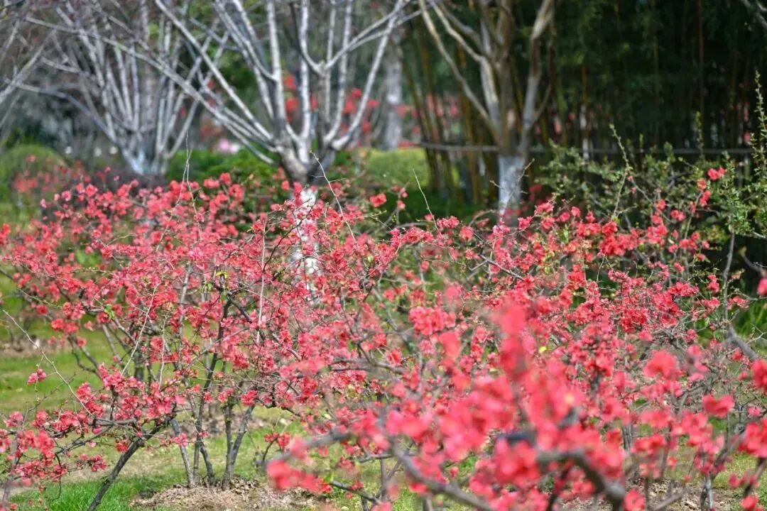 园内的报春海棠已经按捺不住春意。龙形一品香、木瓜海棠正当时,花开正盛,紧接着贴梗海棠、长寿冠迎来盛放的高光时刻,满树繁花缀满枝头,视觉冲击力极强。