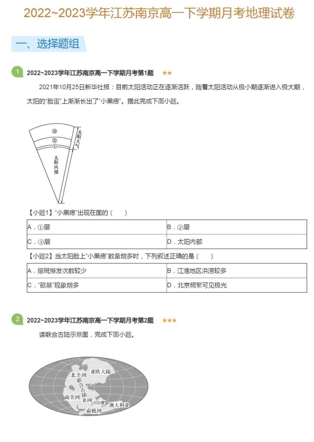 2019-2023学年江苏南京高一下学期月考地理真题及答案解析