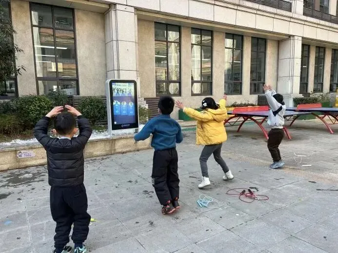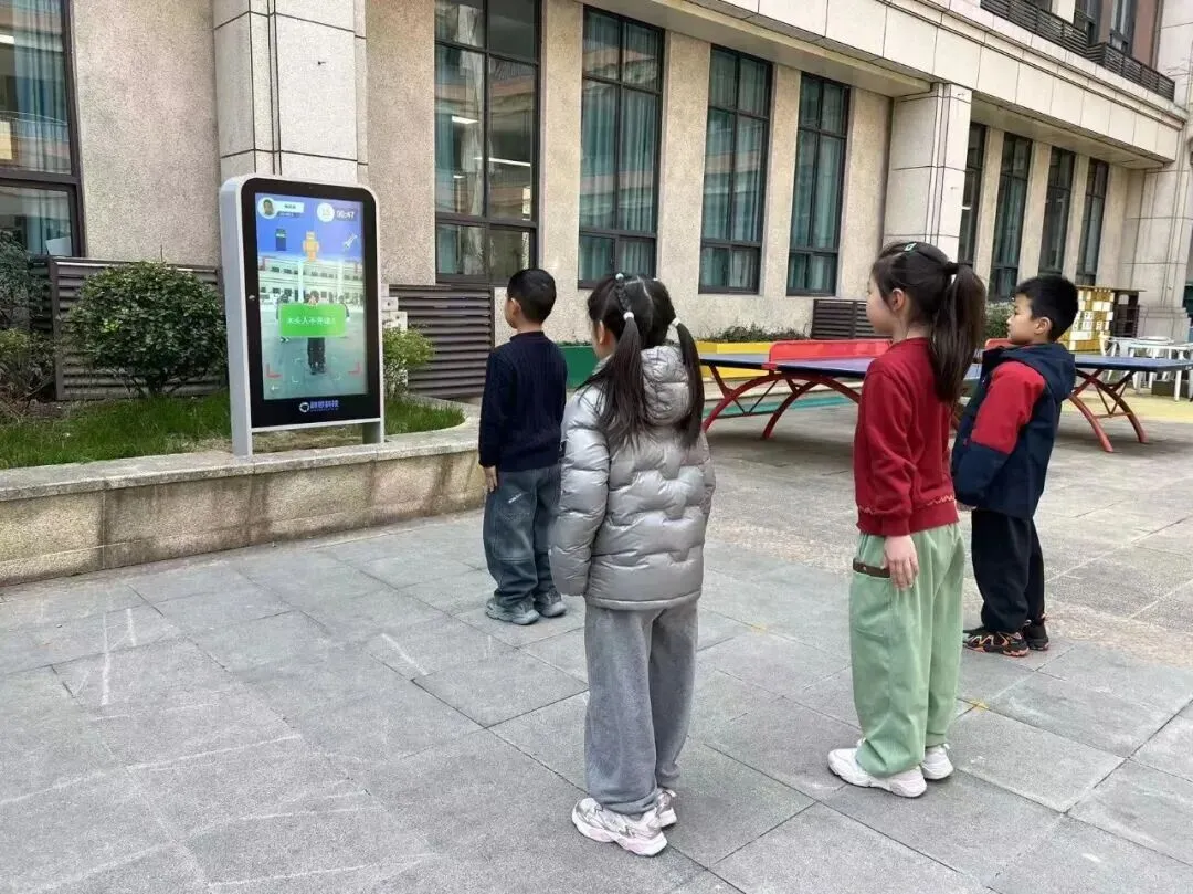 下课15分钟里,南京师范大学附属中学新城小学怡康街分校的一年级孩子们,兴冲冲地围在 AI 体锻屏前。“你看,我刚集齐了好多国旗,解锁新关卡啦!” 张同学指着自己完成 “国旗收藏家” 游戏的打卡数据,小脸上满是得意。旁边一位同学正专注挑战 123 木头人游戏,屏气凝神定在原地。