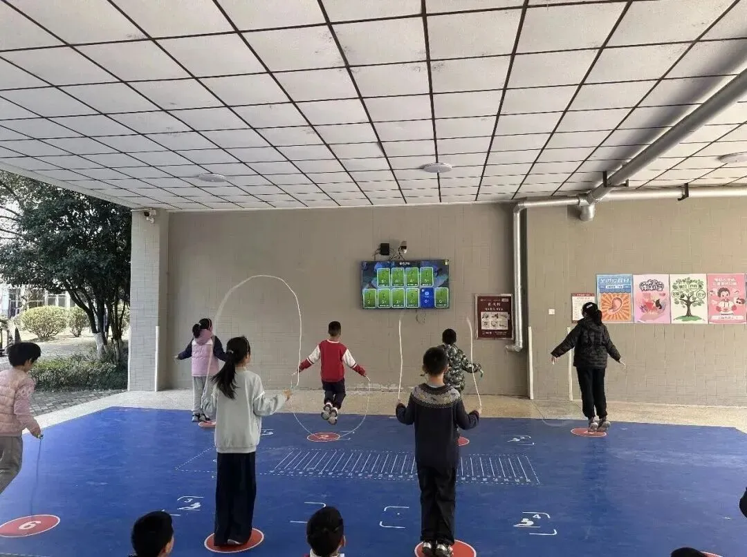 借助AI智慧体育设备,课堂化身为“闯关游戏”——孩子们需要操控屏幕上的虚拟角色跳过一个个障碍,而角色的速度与力量,正取决于他们摇绳的频率与标准度。终端实时捕捉每个孩子的动作细节,同步纠错并生成数据反馈。体育老师吴青说:“过去一节课,我拿着秒表和计数器满场跑,最多盯住五六个孩子。现在每个孩子的动作数据都在屏幕上,谁起跳早了、谁摇绳不稳,一目了然。”