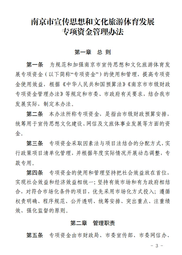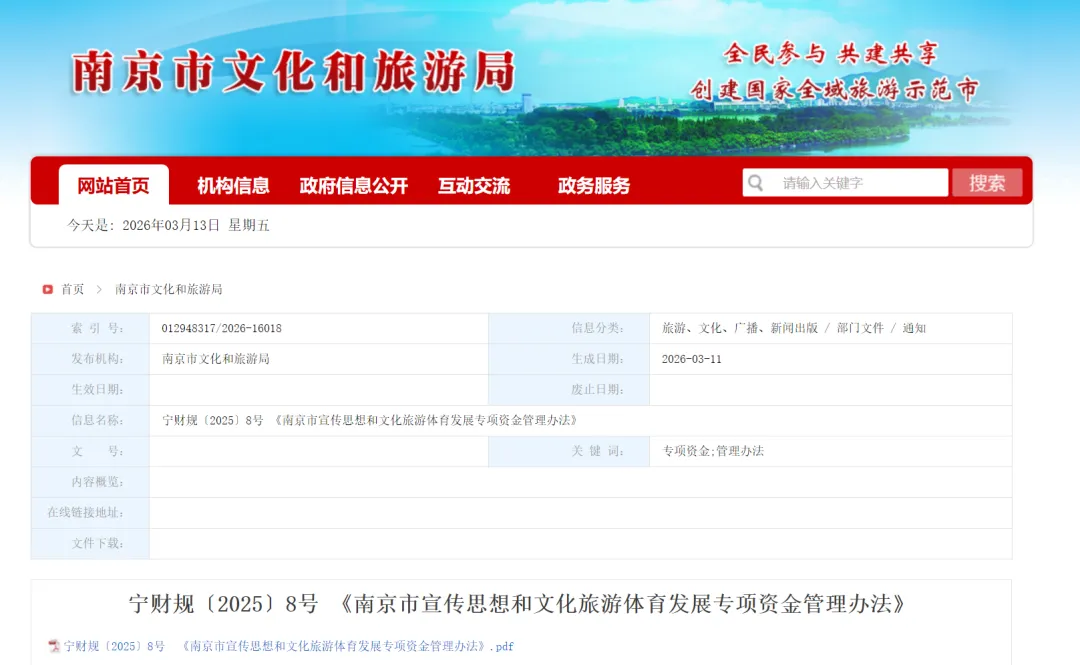 >政策丨《南京市宣传思想和文化旅游体育发展专项资金管理办法》