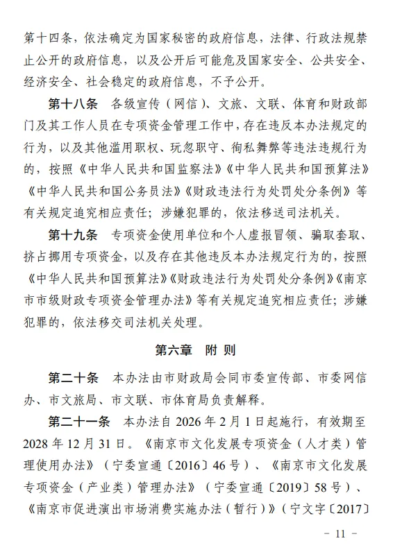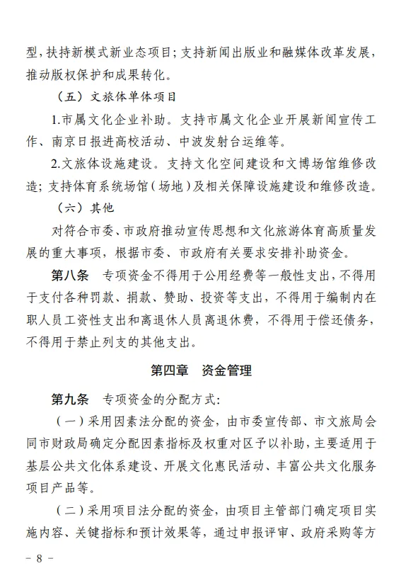 政策丨《南京市宣传思想和文化旅游体育发展专项资金管理办法》