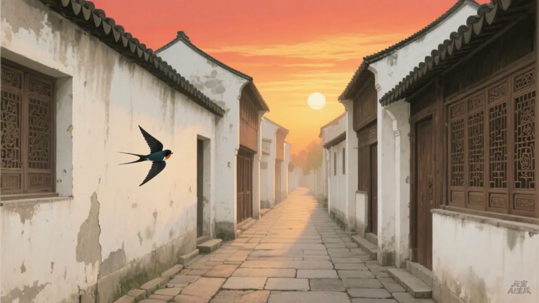 朱雀桥边野草花,乌衣巷口夕阳斜。