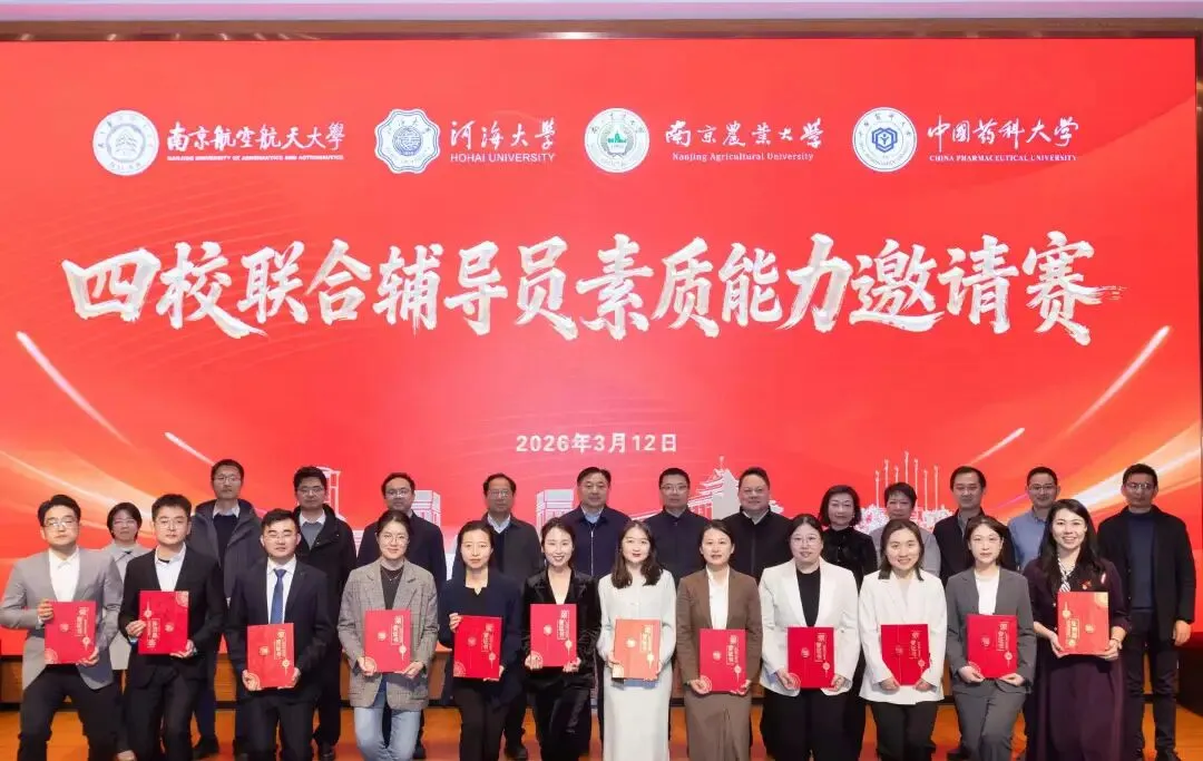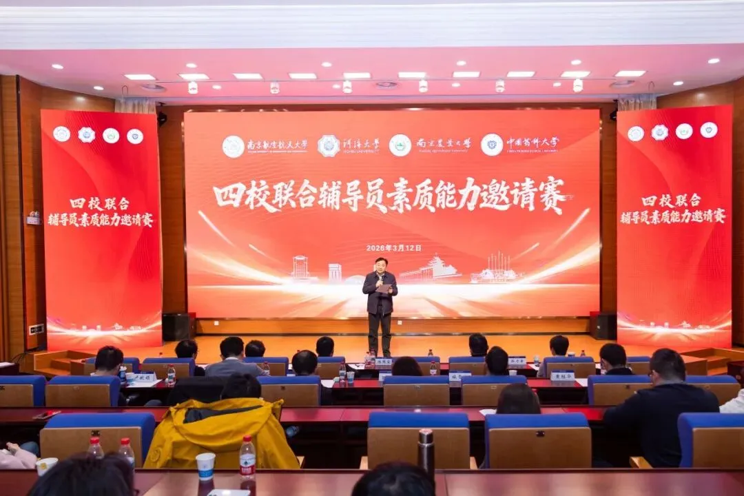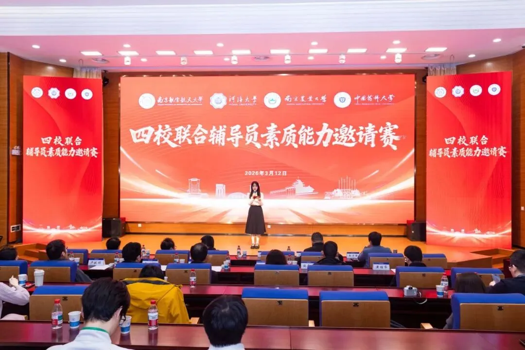 为深入学习贯彻习近平新时代中国特色社会主义思想,扎实落实高校立德树人根本任务,努力把辅导员队伍建设成为全学段思政教育的主力军、全场域服务成长的引路人、全链条人才培养的助推者, 2026年3月12日,南京航空航天大学、河海大学、南京农业大学、中国药科大学四校的学工队伍相聚在百十年梧桐掩映的河海大学西康路校区,共同见证这场以赛带练、以练促学、以学强能的育人盛会。来自四所高校的12名优秀辅导员在此次邀请赛中展开同台竞技、亮剑争锋,用实力说话,以情怀动人。
