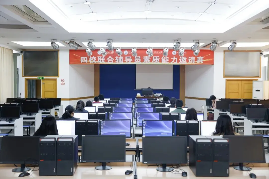 本次四校联合辅导员素质能力邀请赛由兄弟高校学工部门负责人担任评委。来自四所高校的学工部门负责人及近150名辅导员共同观摩了比赛。