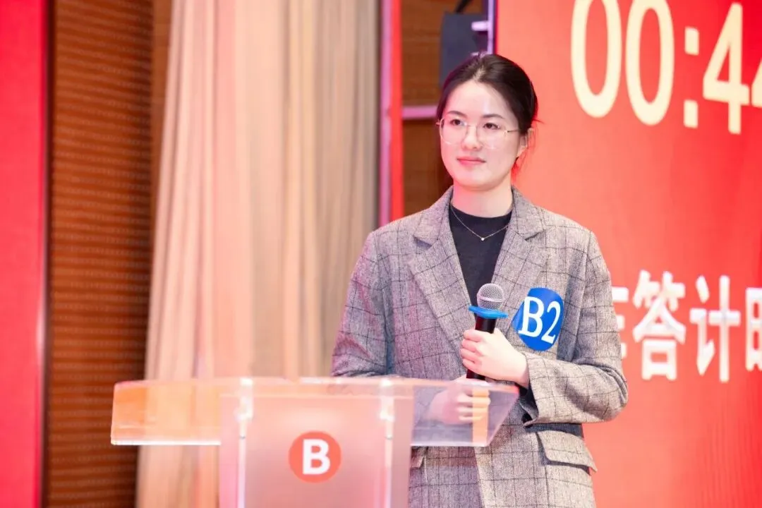 下午1点30分,现场展示环节正式拉开帷幕。首先进行的是思辨碰撞的案例研讨环节。该环节采用 AB 角互动比拼模式,12名选手赛前抽取签位及上场顺序,以“我提问,你回答”的形式展开角逐,在2分钟精准提问、5分钟专业作答的限时挑战中,六组选手围绕学生思想价值引领、学风建设、心理健康、生涯规划等典型案例,条分缕析提出解决方案,高屋建瓴总结工作规律,在互学互鉴中碰撞出的育人智慧火花。