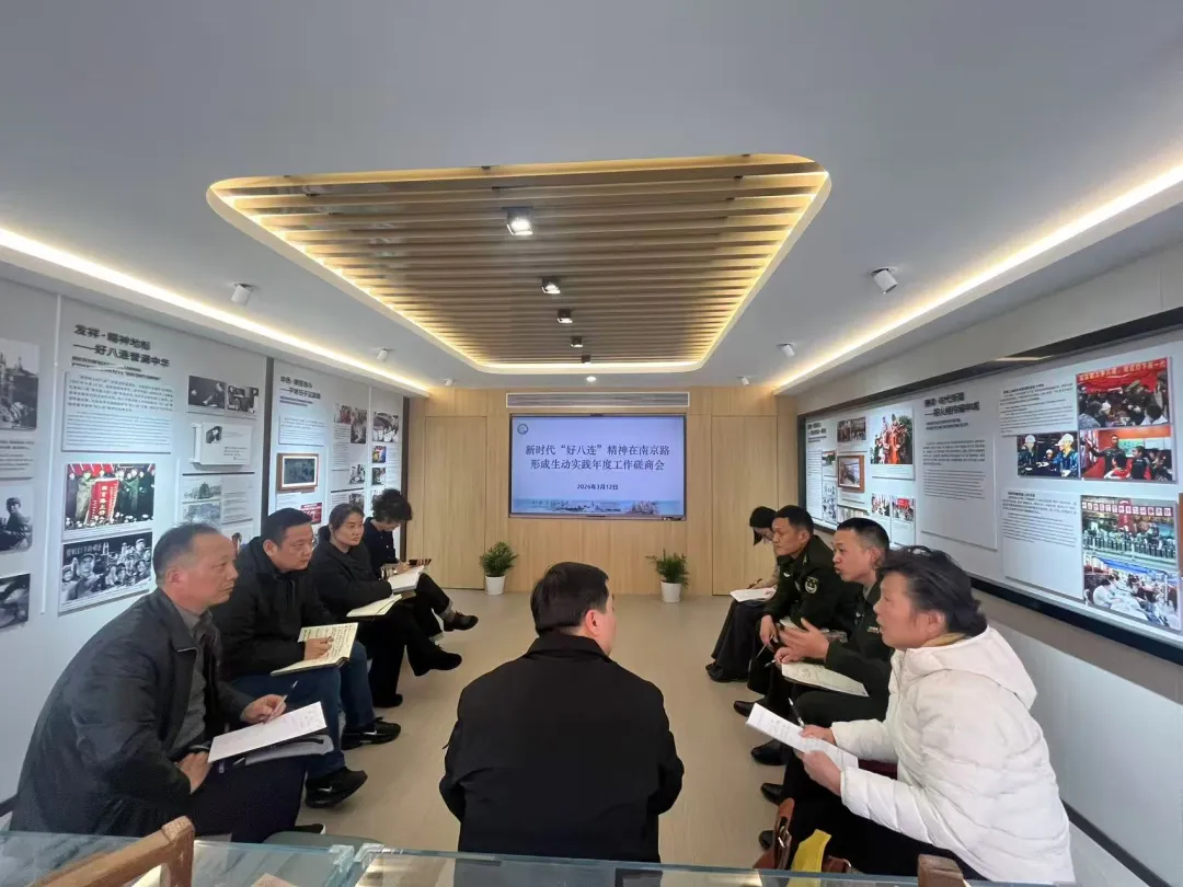 3月12日下午,黄浦区在“学八连·双拥馆”召开新时代“好八连”精神在南京路形成生动实践年度工作磋商会。区退役军人局、南京东路街道、云中居委、南京路商圈党建联席会议及“南京路上好八连”官兵代表齐聚一堂,围绕年度工作重点、实践路径创新、资源整合联动等内容深入交流、凝聚共识,推动“好八连”精神在南京路落地生根、开花结果。