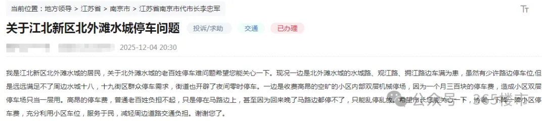 去年年底,江北新区北外滩水城的业主就呼吁降低停车费,称小区每月300元的停车费实在高昂。