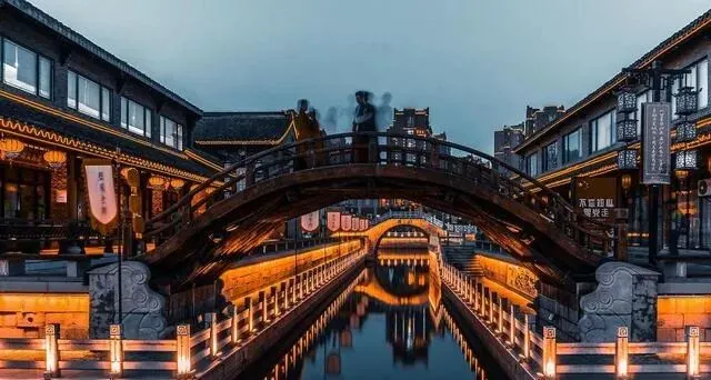 水街在市区,夜色一亮,屋檐的灯倒在河里,拍照不用修图,随手一张就能发。