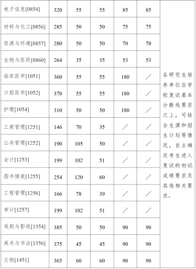 南京大学2026年硕士研究生招生考试复试基本分数线