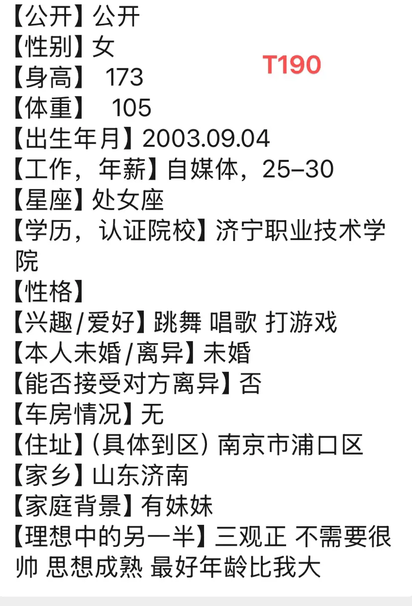当前位置:首页>南京>南京相亲|2003年,女,身高173,济宁职业技术学院毕业,自媒体工作,年薪25-30W,山东人在浦口区