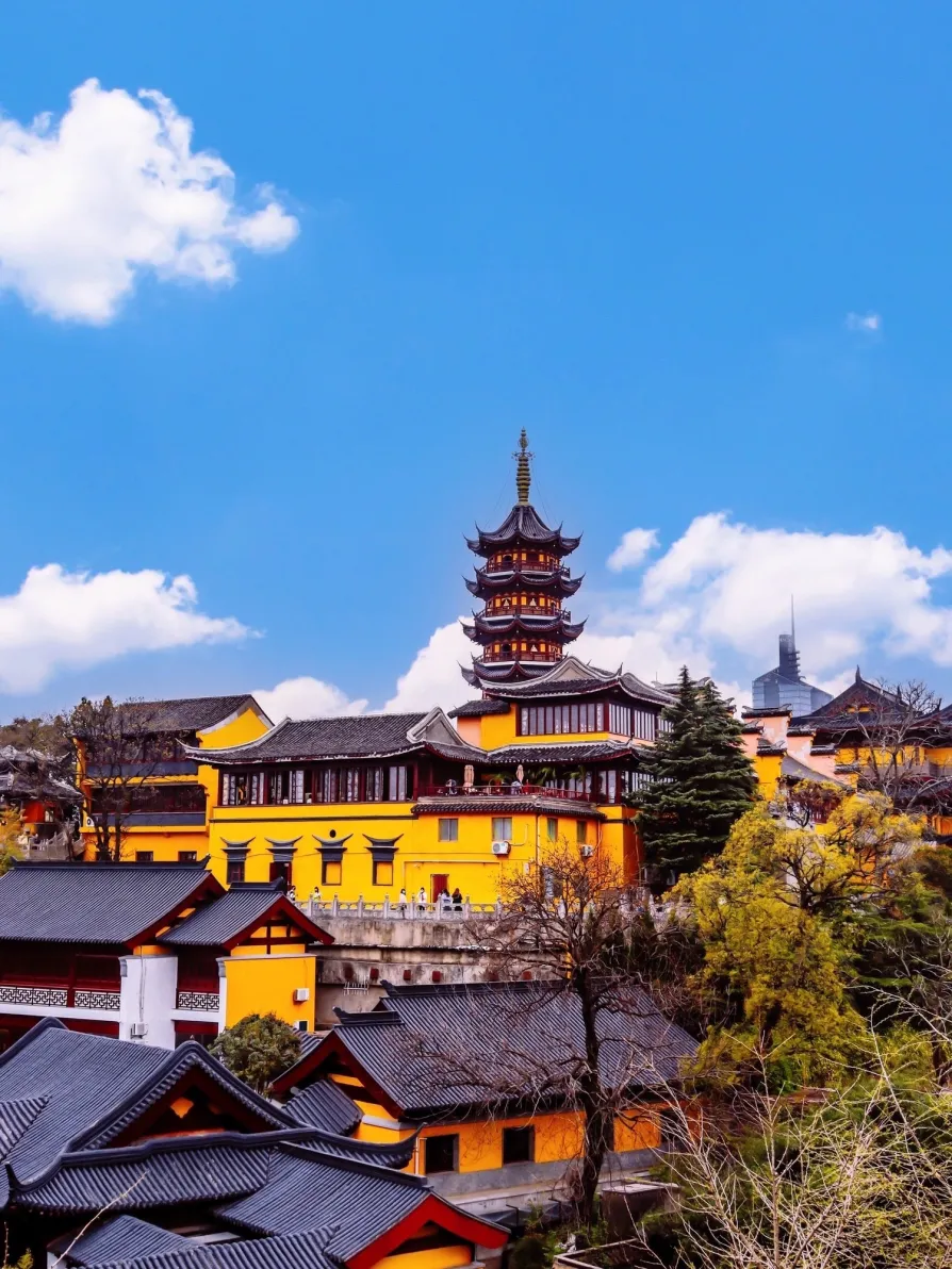 从玄武湖出来,步行即可到达鸡鸣寺。黄墙灰瓦,古风十足,香火旺盛,祈福灵验,门票10元还赠送三支香。春天樱花盛开时,这条路更是美到封神。
