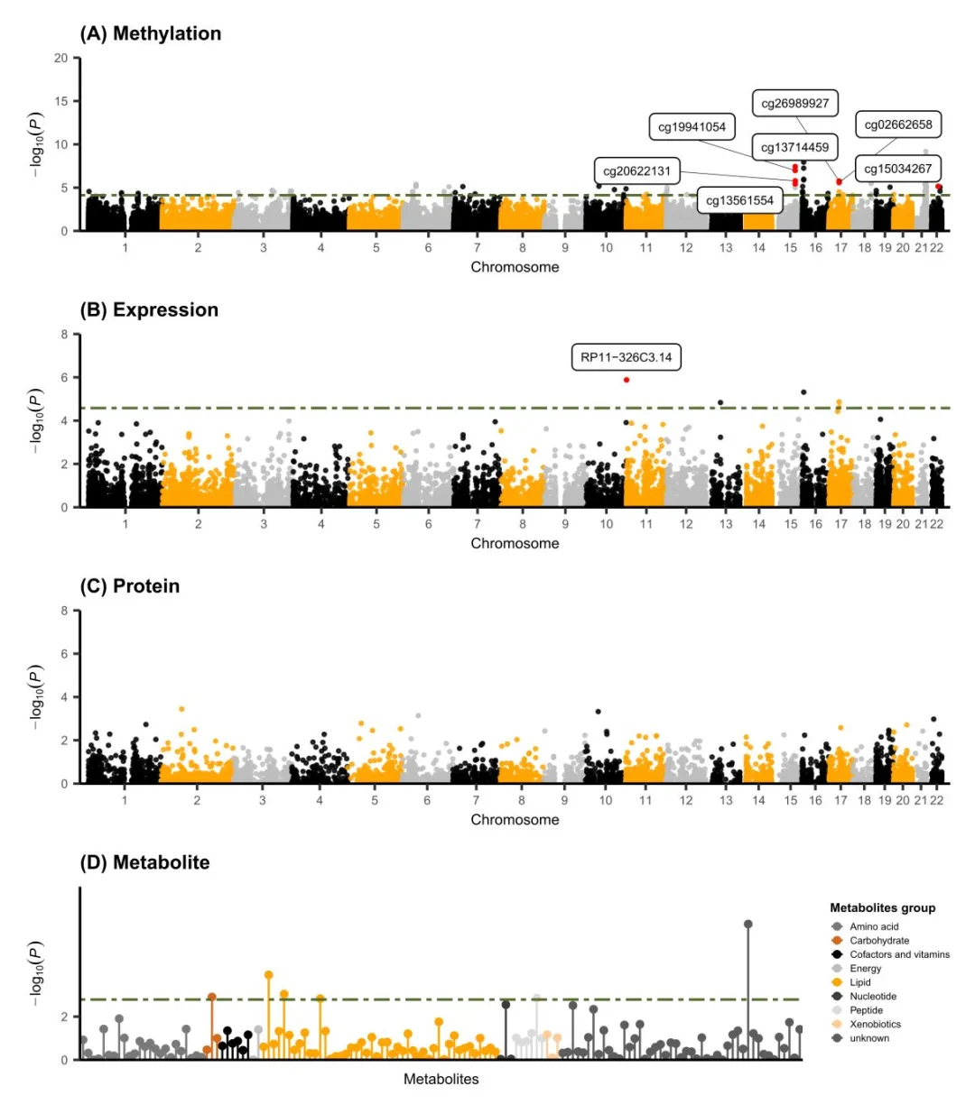 研究结合涵盖 DNA 甲基化、基因表达、蛋白质和代谢物的联盟级汇总水平分子数量性状位点数据;基于筛选出的生物标志物,构建了分子修饰评分,用以解析基因 - 吸烟的交互作用模式,并对肺癌高风险吸烟人群进行风险分层。