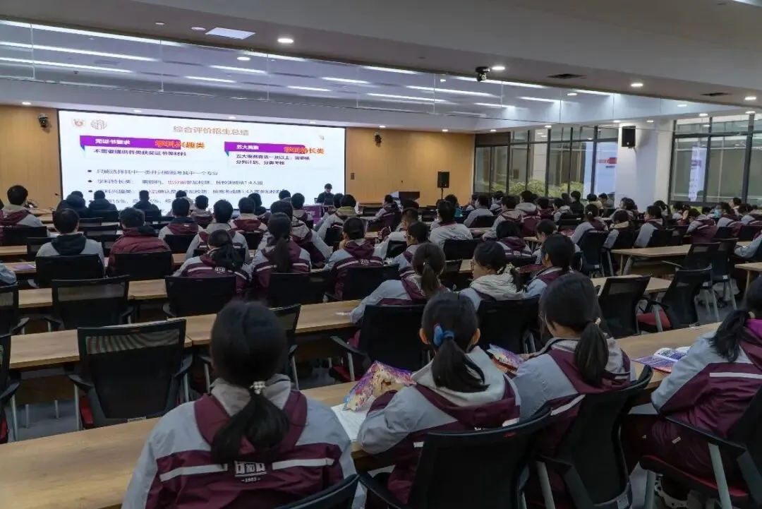 宣讲活动以“煌煌校史,巍巍成就”展开,聚焦南京大学的深厚底蕴和辉煌历程。通过介绍南京大学的四个校区,以及完美契合“办最好的本科教育”理念的人文关怀,展现了南京大学的精神与传承。随后,南京大学的同学们又详细介绍了南京大学的办学特色、培养方案,从二次选拔到全贯通的专业准出机制,进一步加深了学弟学妹们对这所诚朴雄伟高校的了解。其中着重强调了南大的专业设置,详述南大在最新一轮学科评估中的A+学科,以及新开设的双学位学科,拓宽了学弟学妹们的专业选择面。