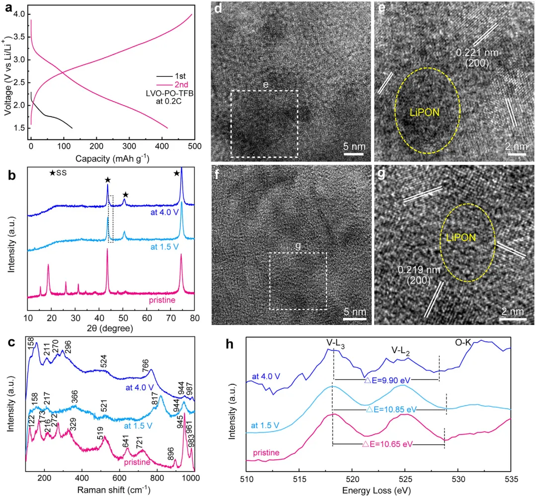 图3、LVO-PO-TFB的电化学性能和反应机理研究。