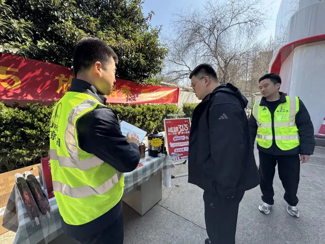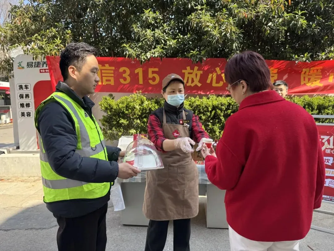 3月13日,南京公司在乐山路加能站举办“3·15客户体验日”活动,以实物体验、互动科普传递“易捷万店无假货”承诺。活动现场设置咖啡试饮、车辆免费检测、配件质量管控流程讲解等环节。工作人员现场演示燃油宝等自有品牌产品辨别方法,讲解质量管控要点,普及消费维权知识。通过沉浸式体验,让客户直观感受易捷商品品质与服务标准。