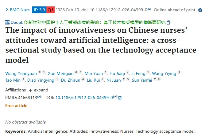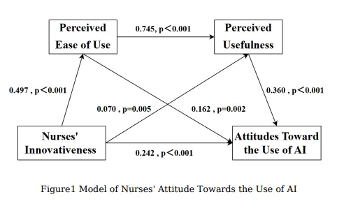 研究验证了“护士创新性→感知易用性→感知有用性→人工智能使用态度”的中介路径。