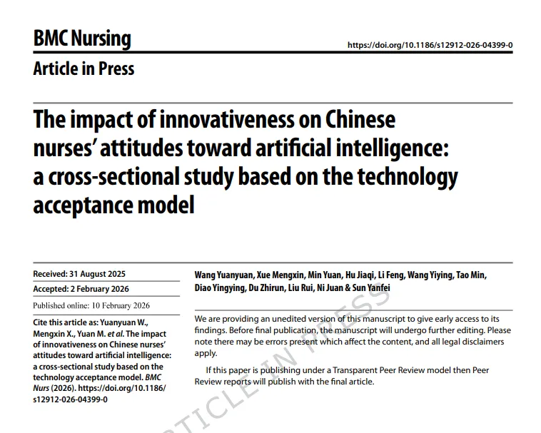 创新性的角色:护士的创新性被视为影响其对新技术(如AI)接受度的前因变量,本研究将探索其与感知易用性与感知有用性的关系。