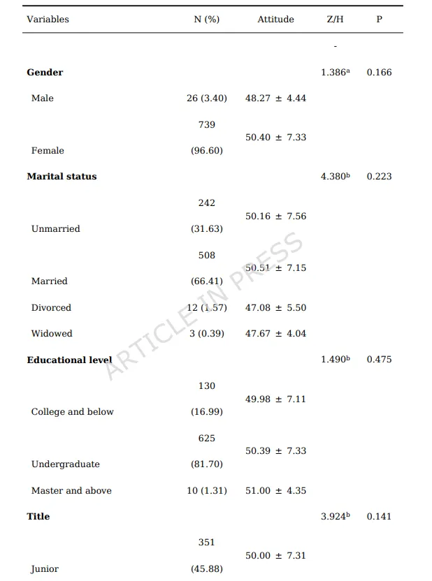 影响因素:探讨影响护士态度的各种因素,例如知识水平、职务层级和创新性等。
