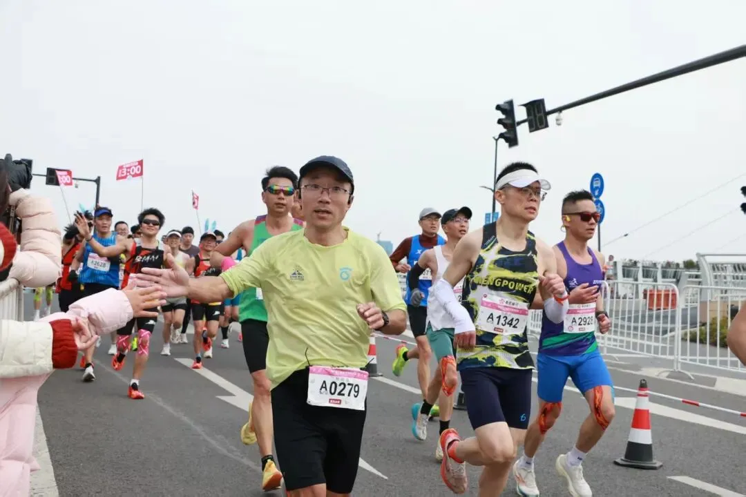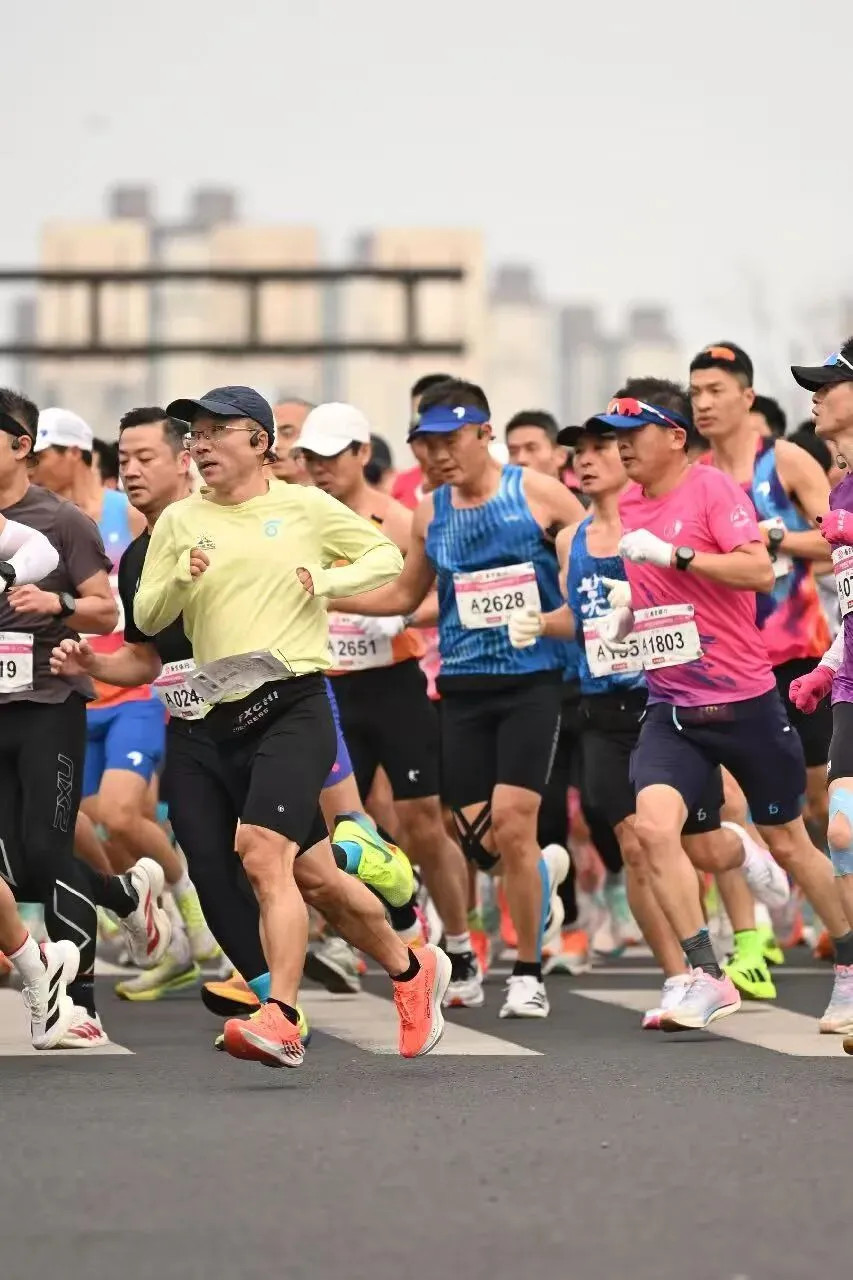 跟着大集团跑,最大的好处是省力。大家步频一样,呼吸同频,像一支训练有素的队伍。我几乎没怎么进站补给,都是前面跑友传递水,我按计划5公里补一个胶。气温低,出汗少,体感一直很舒服。